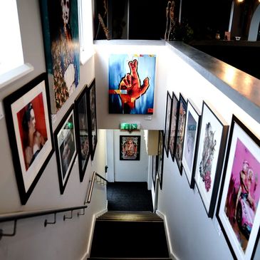 Original art pieces and prints displayed throughout the studio, these are available to purchase.